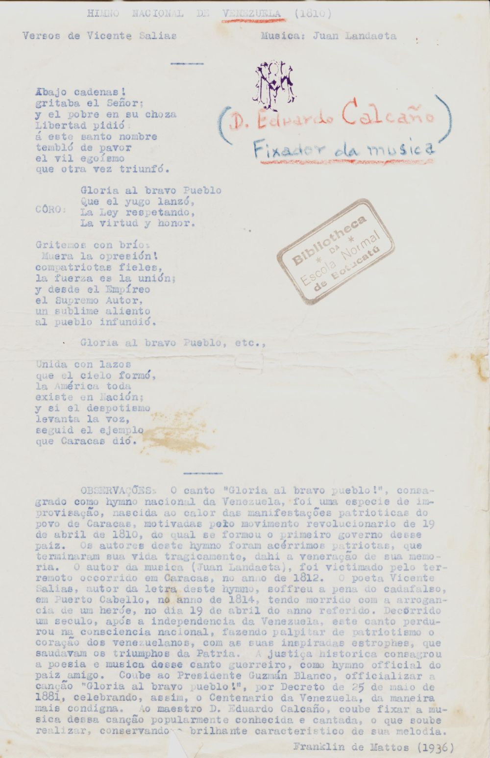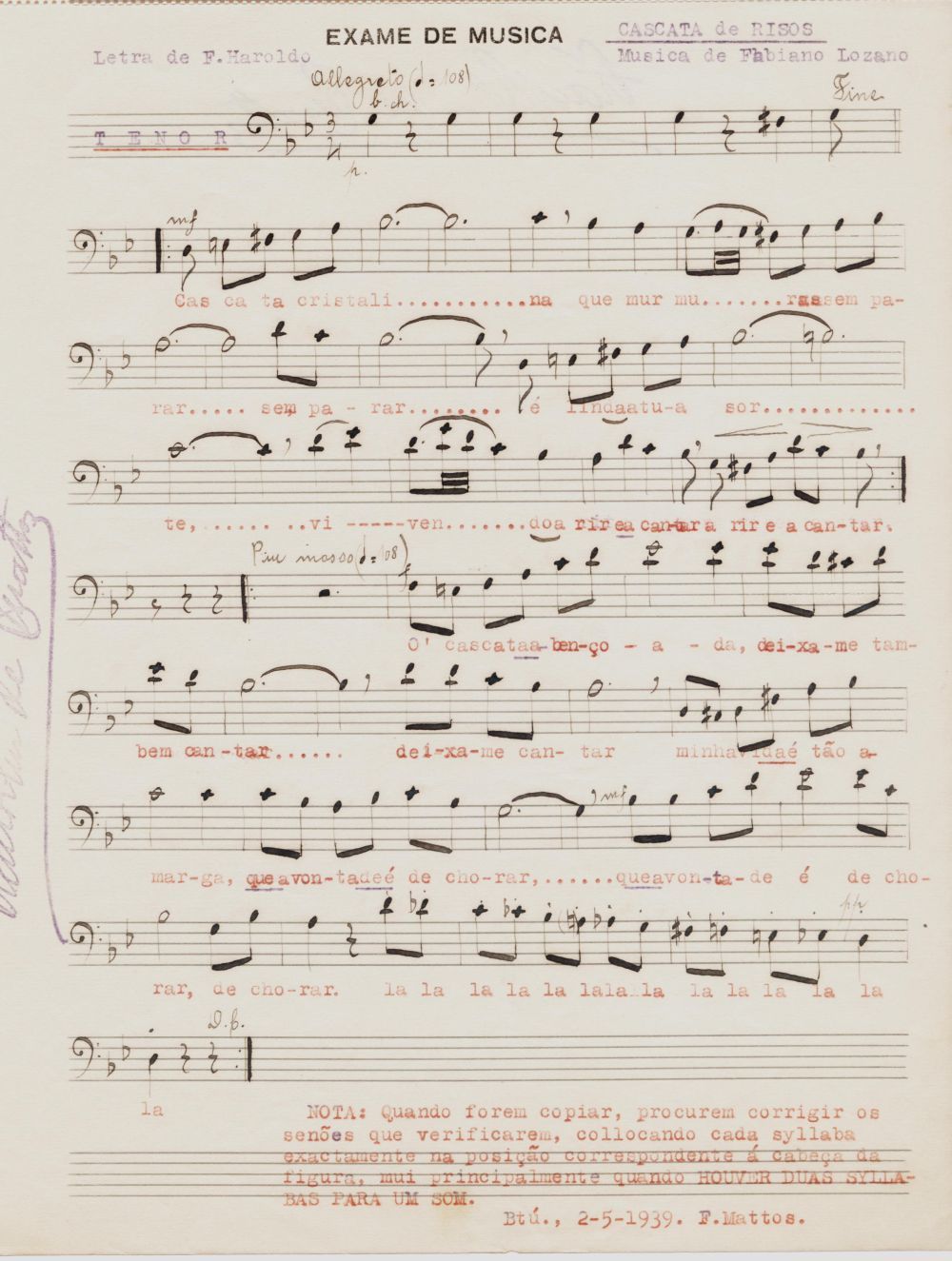- Espólio musical do Prof. Alfredo Franklin de Mattos